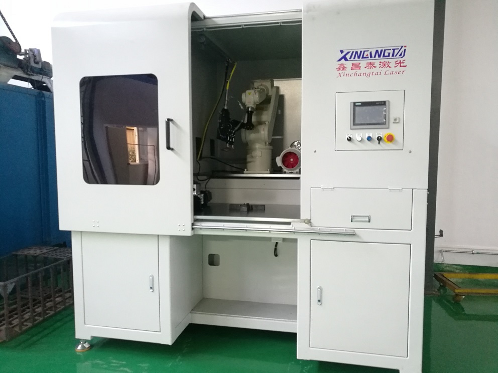 机器人采用国产达野小型机器人,载重8kg,特制轻量化激光加工头,配备通讯接口、数字/模拟信号接口方便与激光控制系统连接通讯并进行深度集成,可实现七轴联动功能。